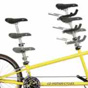 The heart of the Periscope is our double seat mast system, which provides four times the range of adjustability of other tandems and accommodates riders from 3 ft. to over 6 ft. Think of the Periscope’s telescoping, precision stainless steel seat mast and quick-release double-clamping system as a seat post within a seat post that adjusts to fit virtually anyone. Fully adjustable front and rear stems further improve the scope of its sizing range.