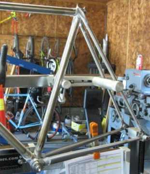 | THE FRAMES Although there has been an explosion in the development of new, high-tech materials in frame production over the last fifteen years, manufacturers of top-line steel bicycle tubing have not been standing still. On the contrary, there have been advancements in steel alloy technology that allow builders to produce frames with lower weight and greater durability than would have been imaginable just a few years ago. For each project, I choose tubing from Reynolds, True Temper and Columbus to meet the ride and performance characteristics requested by the customer. Joining these steel tubes is accomplished with three possible methods. The first way is silver brazing with beautiful investment cast lugs that come in many distinct styles or can be completely customized with a unique hand cut pattern. The second way is fillet brazed which is done lugless, the tubes being joined with a brass fillet that is blended to make the tubes appear to be flowing into one another. The K. Bedford Premier line of frames are available in either of these construction methods and are all done as one off custom models for the specific individual. The third way is Tig welding which is a very accurate, clean welding process that has a simple no frills look. This process is the basis for the new K. Bedford Tig Comp line of frames. These are very light frames offered in completely custom competition geometries in both Cyclocross and Road models. These frames are perfectly suited for the serious competitor or weekend warrior/club rider. |