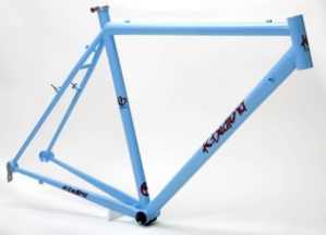 TIG Comp Frames K. Bedford Customs Tig Comp Frames are very lightweight, competition oriented steel frames with carbon forks perfectly suited to the serious competitor or weekend warrior/club rider. These new KBC Tig welded frames are designed and constructed with the same level of skill and care as are all K. Bedford frames. All design work and the bulk of the handwork is done by Kelly with the Tig welding being done by one of the industries finest, most experienced welders. Tig Comp frame features: Tig welded frame construction Full custom geometry Lightweight ~ built with True Temper S3 and Columbus Spirit tubing Equipped with Alpha Q GS10 Road or Alpha Q CX10 CycloX forks. * Replaceable rear derailleur hanger Single color paint scheme, complete decal set and full clear coat. |