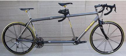 | Kent Eriksen Cycles tandem frame with S and S Couplings that separates into two sections for easier travel. |