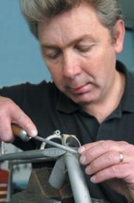 Craftsmanship From the first stage of taking your order to the final clear lacquer paint finish - each member of the Mercian team is committed to service to you, as well as the production of a high quality product. We all have passion for the lightweight and sleek machines that Mercian Cycles produce and with over 200 years experience between the 9 team members - you can rely on their guidance, skill and expertise to produce the frame you really want. At Mercian's frame-building workshop there are no production lines. The method of building our frames has barely altered since the very beginning of Mercian Cycles. It really is a very traditional environment - looking back to the very best methods of hand-made quality. The frame order is passed to the framebuilder, who builds the frame from start to finish. With great skill and incredible patience he begins by preparing the lugs - drilling and filing, by hand, the cut-outs and intricate designs which make Mercian frames distinctive and beautiful. As Michael Kone (Bicycle Classics) was recently quoted, "That's the difference between buying craftsmanship and buying technology. Craftsmanship increases or at least maintains its value over the years, but technology gets severely devalued the minute it is sold, because everyone knows in a year it's going to be old news." |