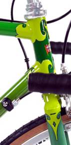 finisher Patience is paramount. The frame is primed with etch coat primer, which is allowed to air dry in the clean conditions of the finishing room. Many of our 60+ colours are hand mixed from up to 8 colours to offer the deep and striking colours we have to choose from. The sprayer then coats the frame with layers of paint, before baking in a state-of-the art gas stoving oven to harden the surface at just the right temperature for a hard wearing and durable finish. Once the layers of paint for the main finish have been stoved, the frame is then masked off by hand, using low-tack masking tape, prior to the application of contrasting colour panels or bands, before baking once again after each layer of paint. The transfers are then positioned on the painted frame by another skilled craftsman. The transfers used are not "stickers", but traditional varnish-fix transfers, which may be more difficult to apply - but give a better finish, with no vinyl "step" at the edges of the transfer. This means that they are applied by adding a thin layer of transfer varnish to the area where the transfer is to be placed, once tacky, the transfer is then applied in position and the backing tissue paper carefully wiped off with water. The excess varnish is then removed with delicate solvents and wiped dry with a soft cloth. The transfers are then left to air dry for 48 hours to prevent crinkling or lifting during the varnish process. The lug-lining is added by hand with a small pen-like device, carefully filled with the selected colour and lug lines followed to pick-out the lugs and finish the frame beautifully. Contrast band or barber's pole edges are finished by hand with the finest paint brush. The transferred frame is given two coats of hard-wearing clear lacquer to protect the finished frame, before stoving in the oven once again. |