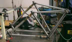 | Road Bicycles For recreation or competition, the fit of a custom road frame increases your power, efficiency and comfort. We make our frames from steel (welded or lugged) and titanium, with the option of carbon fiber stays. Each material has its advantages in terms of cost, weight, durability and the ride performance that can be achieved. We work with you to determine the material selection and frame geometry the best meets your needs. |