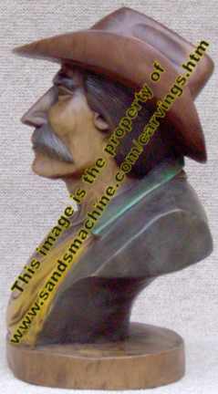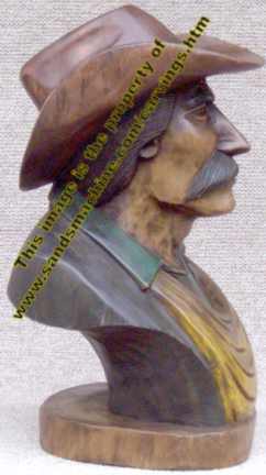 Hand Carved Cowboy Bust #74