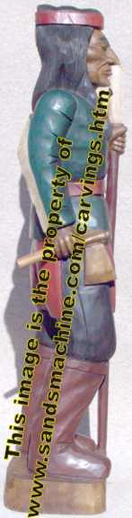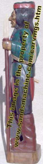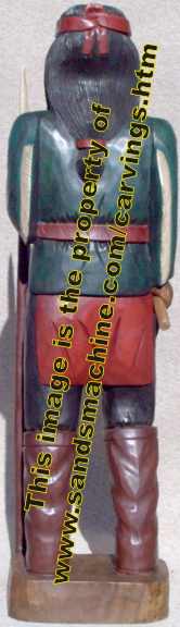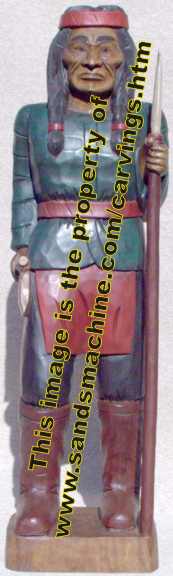 This Indian has no headdress and a tomahawk in his right hand and a spear in the left.