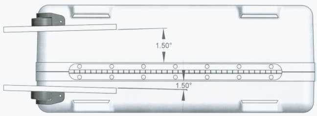 For example: If you have each wheel set at 1.5 degrees off the centerline of the case, the total between the two wheels will be 3 degrees.