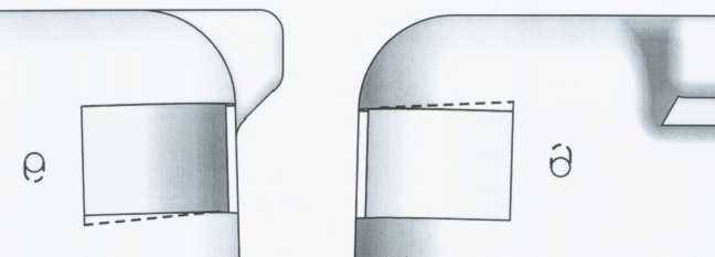 The dotted lines in the image below show where material will need to be removed to change the alignment. If you have trouble visualizing this detail, print the image then fold the paper 90 degrees along an imaginary vertical line between the two details to give you a 3 dimensional view and that may help .Not drawn to scale.