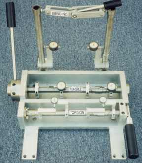 Combination torsion, tension and bending test fixture.